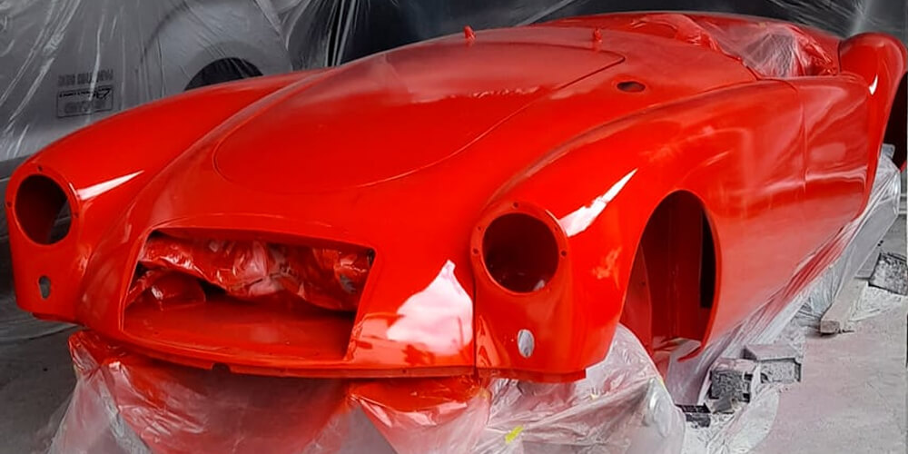 Painting: The red car paint is applied in several thin layers to achieve an even, flawless finish. Each layer should be allowed to dry completely before applying the next.