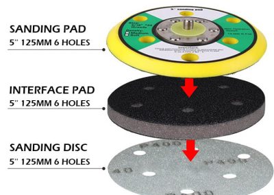 3. Se aplica sin esfuerzo entre los discos de lijado y las almohadillas de respaldo para cambios rápidos.
