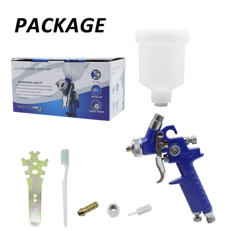 2. HVLP: La minipistola de pintura en aerosol utiliza el diseño HVLP, que ahorra costos de material de pintura al reducir la cantidad de sobrepulverización.