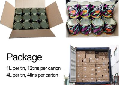 | Paquete: | 1L*12 latas/cartón, 4L*4 latas/cartón. |