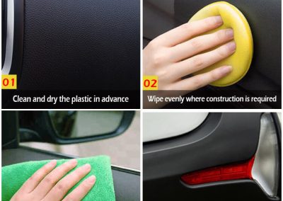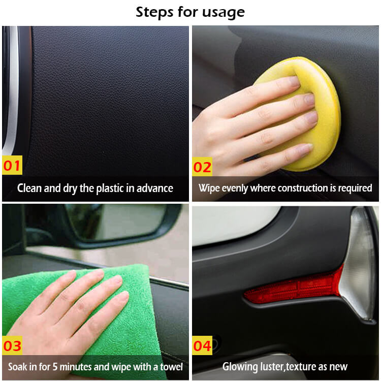 Plastic Restorer se utiliza para la desoxidación y restauración de plásticos y cauchos, y para remodelar el brillo original de los plásticos. Puede disolver rápidamente la capa de óxido en la superficie del plástico, que contiene un factor de acristalamiento de nivel nanométrico, formando una capa protectora en la superficie del plástico, resiste los rayos UV y el envejecimiento, y también desempeña un papel en el alisado, el acristalamiento y el brillo del superficie del plástico.