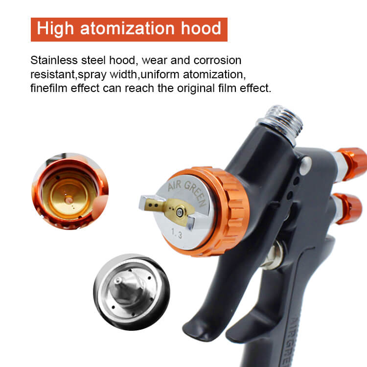3. Pistola HVLP y componentes adecuados para las industrias automotriz, de mantenimiento, de chapa metálica, de muebles, de plástico y de construcción. Apta para pulverizar pinturas al óleo o látex, así como imprimación, pintura transparente, pintura monogrado, imprimación, etc.