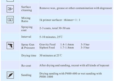 | Taux de mélange | Apprêt surfaçant 1K : diluant = 1 : 1 |