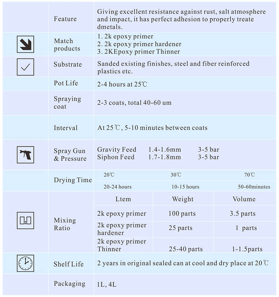 | Diluant d'apprêt époxy 2K | 25-40 pièces | 1-1.5 pièces |