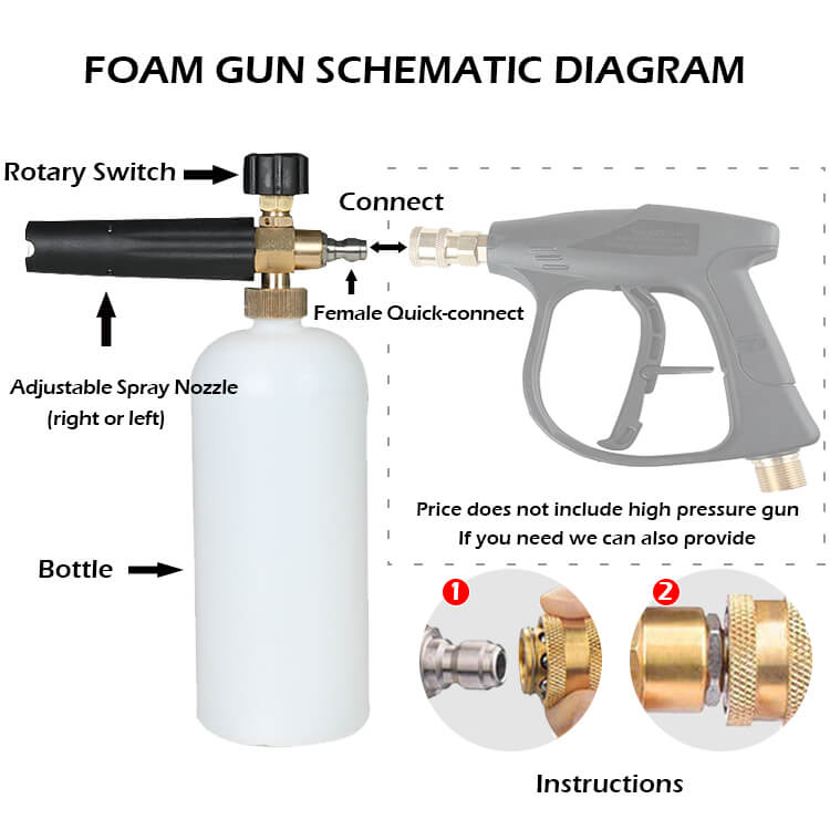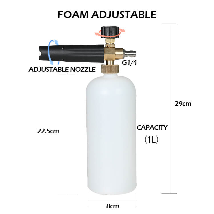 S811 Canon à mousse avec connecteur rapide 1/4" pour pistolet de nettoyeur haute pression avec bouteille de 1 litre