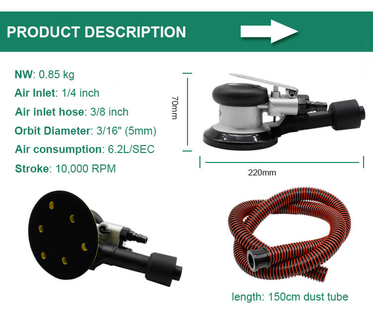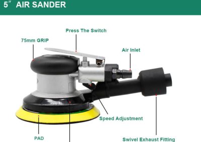 ·PROFESSIONAL PNEUMATIC SANDER: With light weight and ergonomic design, 5/6 inch random air sander can be easily held in palm. This sander can be used for deburring of wood, polishing and derusting of metals, polishing and buffing of all paint surface.