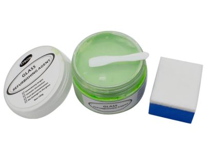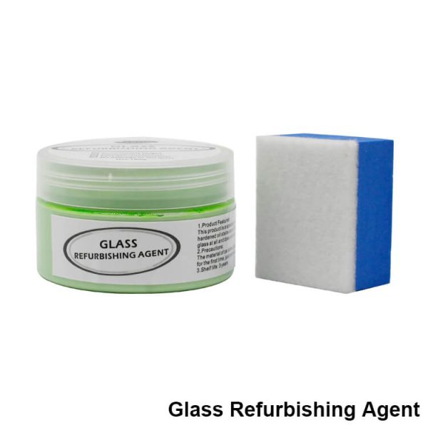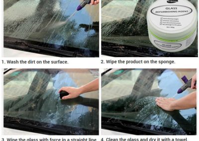 Glass refurbishing agent is a special glass polishing agent designed for the removal of hardened oil stains and oil films on automotive glass. It does not damage the glass at all and does not corrode the wiper blades.