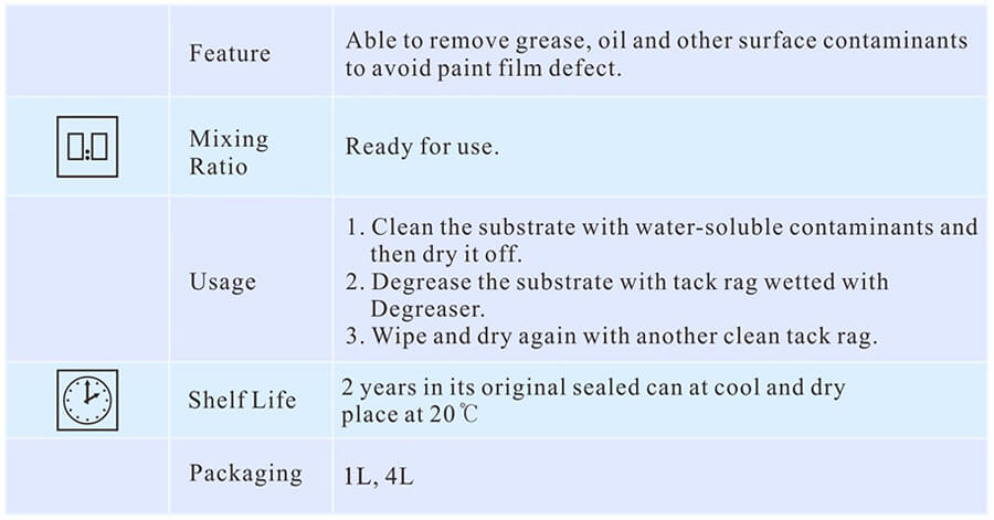 Способен удалять жир, масло и другие поверхностные загрязнения, чтобы избежать дефектов лакокрасочного покрытия.