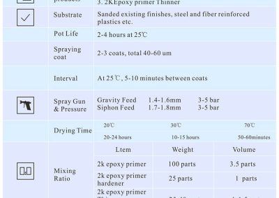 | 2K Epoxy Primer Thinner | 25-40 parts | 1-1.5 parts |