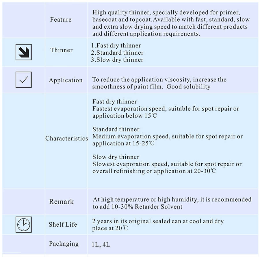 Высококачественный разбавитель, специально разработанный для грунтовки, базового покрытия и финишного покрытия.