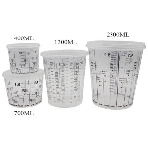 MC700 أكواب خلط بلاستيكية شفافة يمكن التخلص منها مع غطاء لخلط طلاء السيارات موصى بها من قبل شركة طلاء السيارات