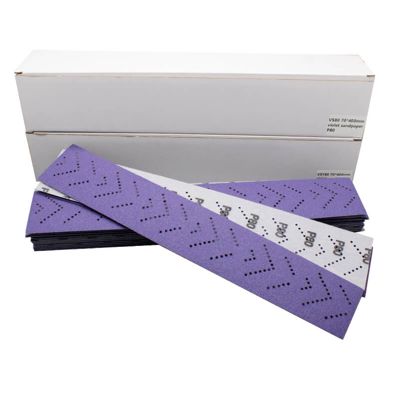 ورق صنفرة متعدد الثقوب ذو خطاف وحلقة تثبيت، مقاس 70×400/420 مم، درجة P60-2500، لون بنفسجي، مناسب لصنفرة السيارات أوراق الصنفرة البنفسجية