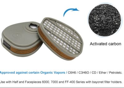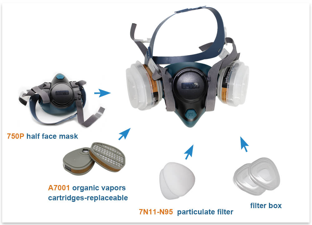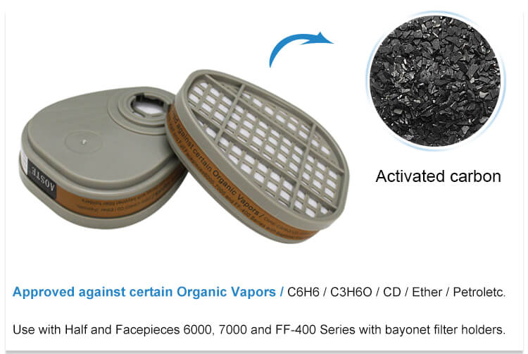 · قبل الدخول إلى مكان العمل الملوث، تأكد من أن القناع وأجزائه كاملة أو تالفة أم لا. وقم بتركيب الفلتر البلاستيكي بشكل صحيح.