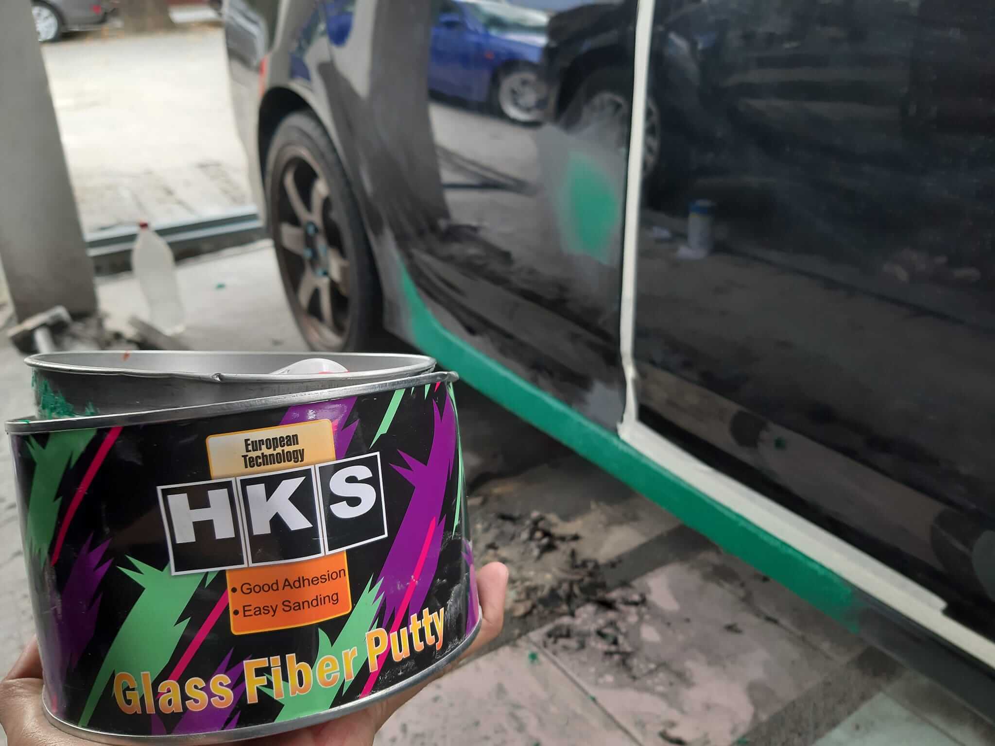 HK016 معجون بوليستر من الألياف الزجاجية حشو جسم السيارة باللون الأخضر لإصلاح الخدوش