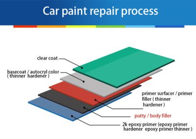 | المادة المتفاعلة: | التشطيبات الموجودة المجففة والصنفرة، ومعجون البوليستر، و1k و2k التمهيدي. |