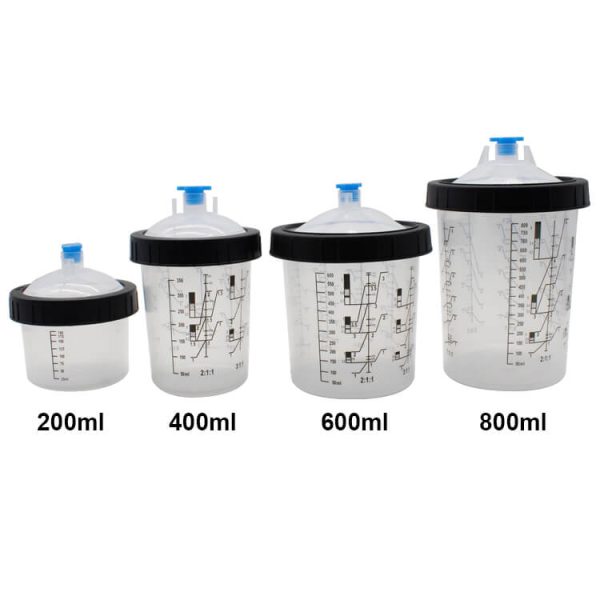 PP600 أكواب الطلاء PPS مجموعة أكواب مسدس رش HVLP البلاستيكية التي يمكن التخلص منها مع أغطية وبطانات