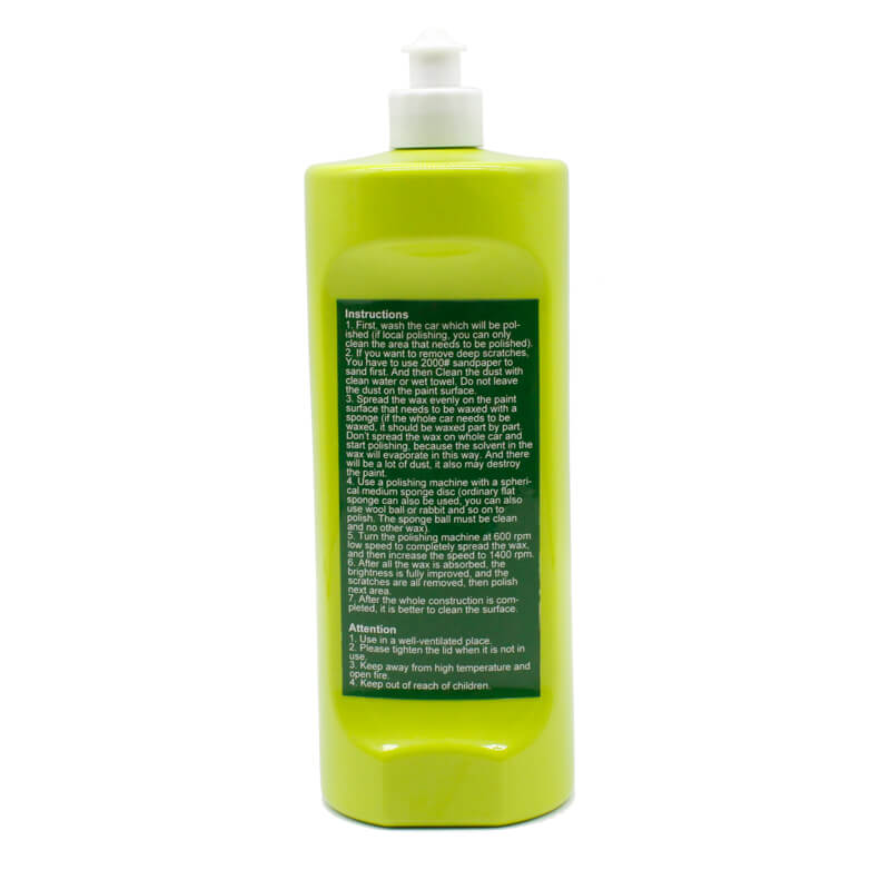 4. استخدمي آلة تلميع ذات قرص إسفنجي متوسط كروي (يمكن أيضًا استخدام إسفنجة مسطحة عادية، يمكنك أيضًا استخدام كرة صوف أو أرنب وما إلى ذلك للتلميع. يجب أن تكون الكرة الإسفنجية نظيفة ولا تحتوي على شمع آخر). 5. قم بتشغيل آلة التلميع على سرعة منخفضة 600 دورة في الدقيقة لتوزيع الشمع بالكامل، ثم قم بزيادة السرعة إلى 1400 دورة في الدقيقة.
