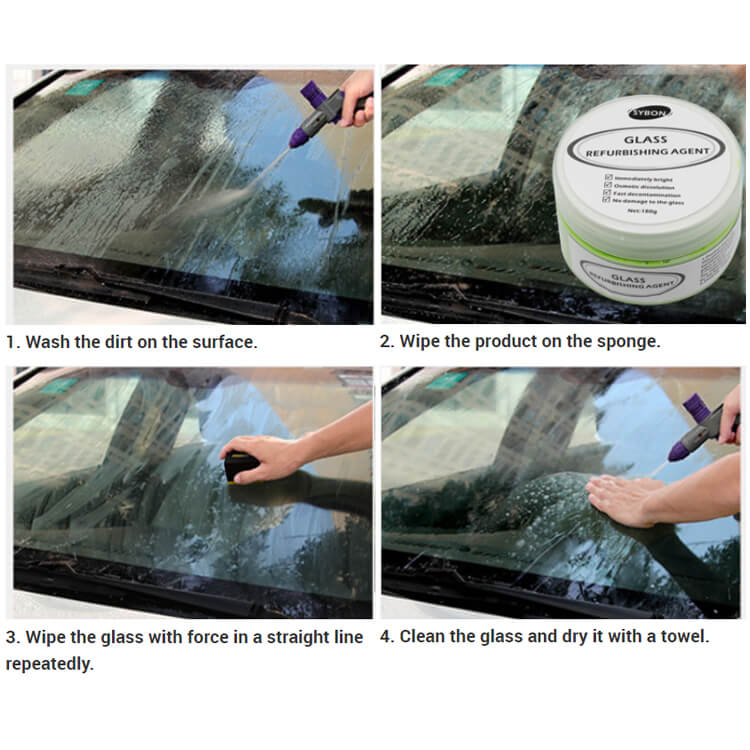 هذا المنتج عبارة عن عامل تلميع خاص للزجاج مصمم لإزالة بقع الزيت الصلبة والأغشية الزيتية على زجاج السيارات. لا يسبب ضررًا للزجاج على الإطلاق ولا يؤدي إلى تآكل شفرات المساحات.