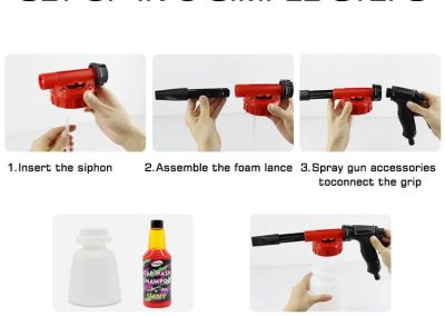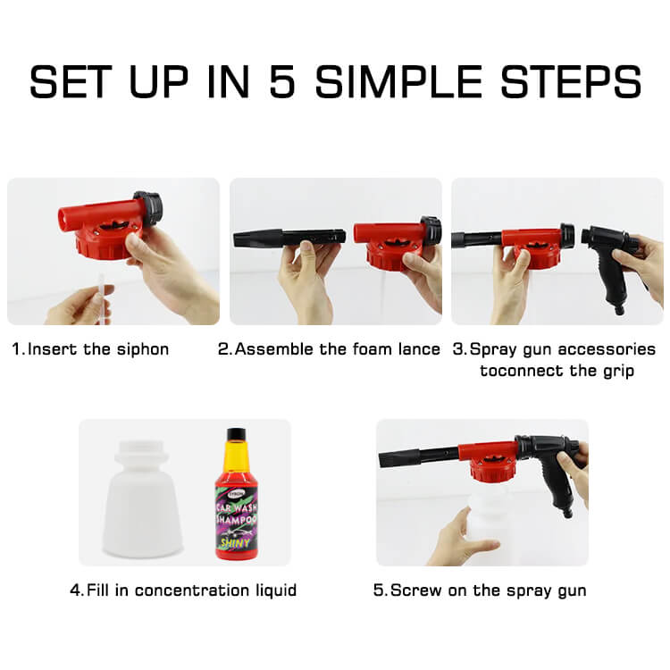 5. تركيب سريع التحرير يحول الفوهة العادية إلى مسدس للرغاوي.