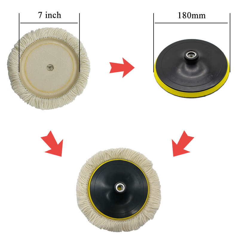 · وسادة تلميع الصوف الثقيلة للقطع والتلميع والتلميع بالمركبات والتلميع والزجاج.